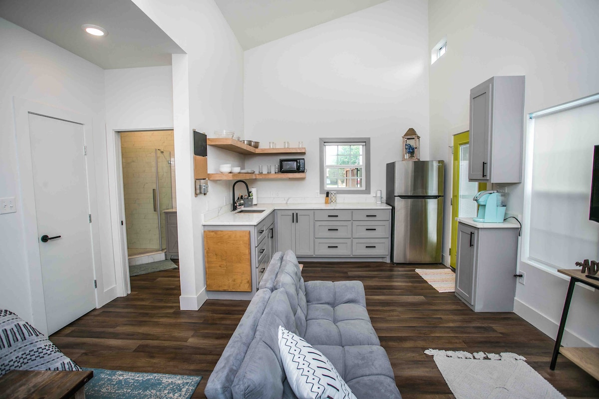 The ModPod guest house has been completely renovated & thoughtfully designed to create the ultimate Lubbock Airbnb experience! The use of bright colors, retro-inspired patterns, & tropical greenery breathes life into the space creating a fun, chic, & relaxed atmosphere. Find yourself at home with the amenities provided such as quality coffee, WIFI, & TV with Roku (Netflix, Amazon Prime). Perfect little getaway for one or two to comfortably enjoy!.