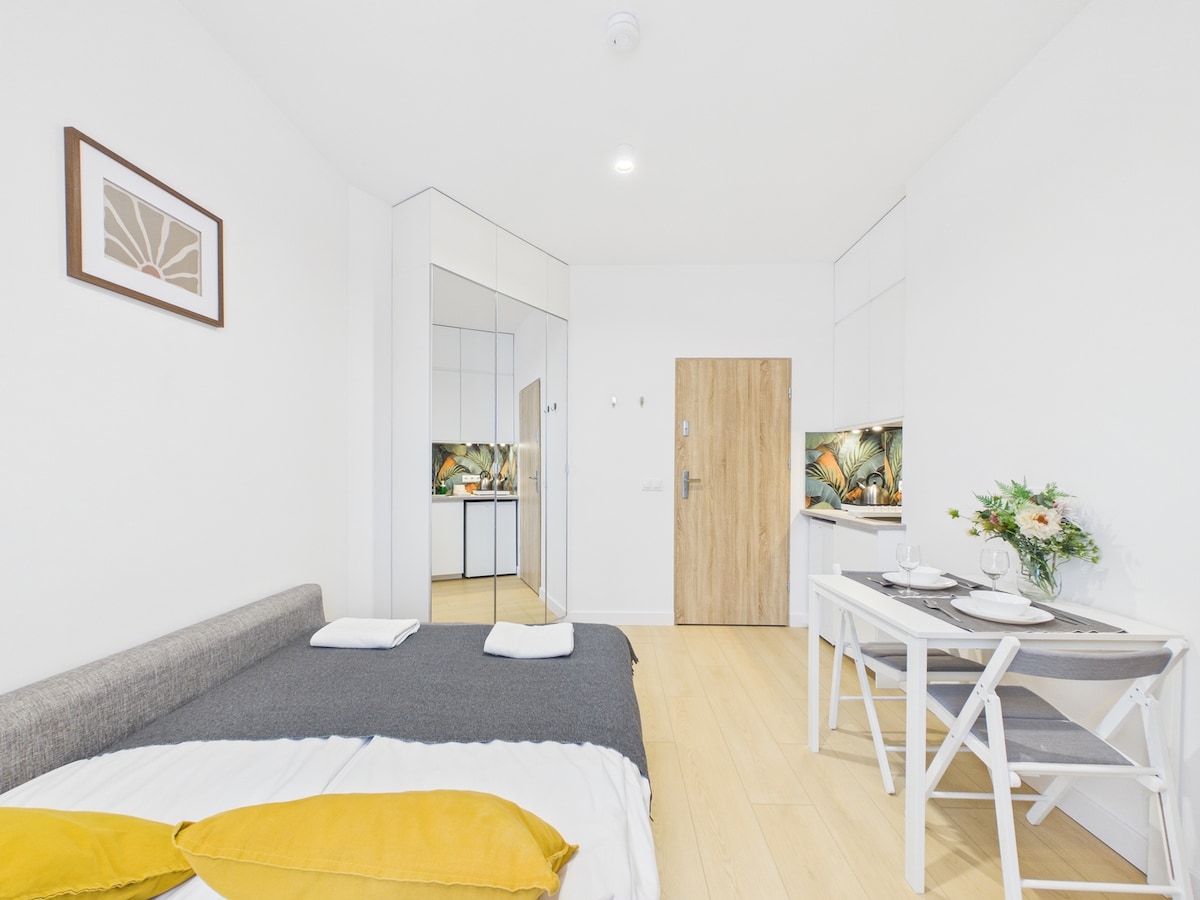 🌿SuperApart Ursus Giserska – Comfortable Studio for 2 Guests!✨ This cozy studio located in Warsaw’s Ursus district is a perfect choice for two guests looking for a comfortable and well-equipped place to stay. The functional layout ensures convenience and ease throughout the entire stay🏢. The studio is situated on the 1st floor of a building with an elevator, providing easy and convenient access.