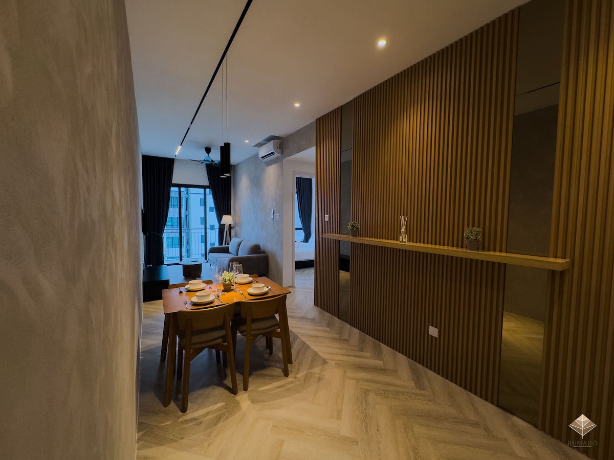 Experience stylish urban living in this elegantly designed Studio, where modern comfort meets serene ambiance & city charm. Situated in a peaceful yet vibrant neighbourhood, it offers a retreat while being close to airport, malls & City Center. Ideal place to relax&recharge, enjoy the panoramic Kuching City view from your private balcony. This studio w/ kitchen can accommodate up to 3pax, perfect for couple, business traveller & family. ★ Complimentary Parking (subject to availability)&Pool