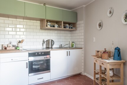 Miejsce jest komfortowe i nowoczesne. Mieszkanie posiada osobną sypialnię z szafą, oraz salon z TV i stołem z 4 krzesłami. Narożnik jest rozkładany i służy jako dodatkowe miejsce do spania. Komfortowe stół i krzesła mogą służyć jako jadalnia lub miejsce pracy. Kuchnia posiada zmywarkę, lodówkę, kuchnię gazową i czajnik elektryczny. Łazienka wyposażona w wannę, która może służyć jako prysznic. Idealne dla rodziny i podróży służbowych. W mieszkaniu jest pralka i odkurzacz.