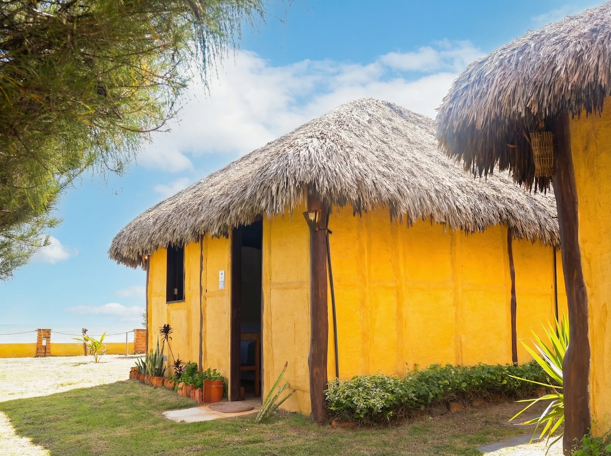 Os quartos foram recentemente aprimorados com ar condicionado, proporcionando um ambiente fresco e agradável para recarregar energias após um dia ao sol. O quarto possui uma cama de casal e uma bicama, além de um suporte para rede.