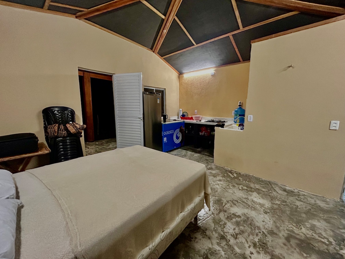 Chalet entero, recientemente construido, en la playa de Macapá en una ubicación privilegiada, frente al mar, a 50 metros de Mangue Seco. 2 dormitorios con aire acondicionado (una suite), 2 baños con ducha eléctrica. Balcón en la planta superior con vistas al mar, sala de estar/comedor integrada en la cocina equipada. Estacionamiento privado. Mezzanine con TV inteligente con Netflix. Wifi rápido. Capacidad para hasta 8 personas (2 en hamacas en el entresuelo y dos en el sofá cama). También hay dos colchones individuales D33.