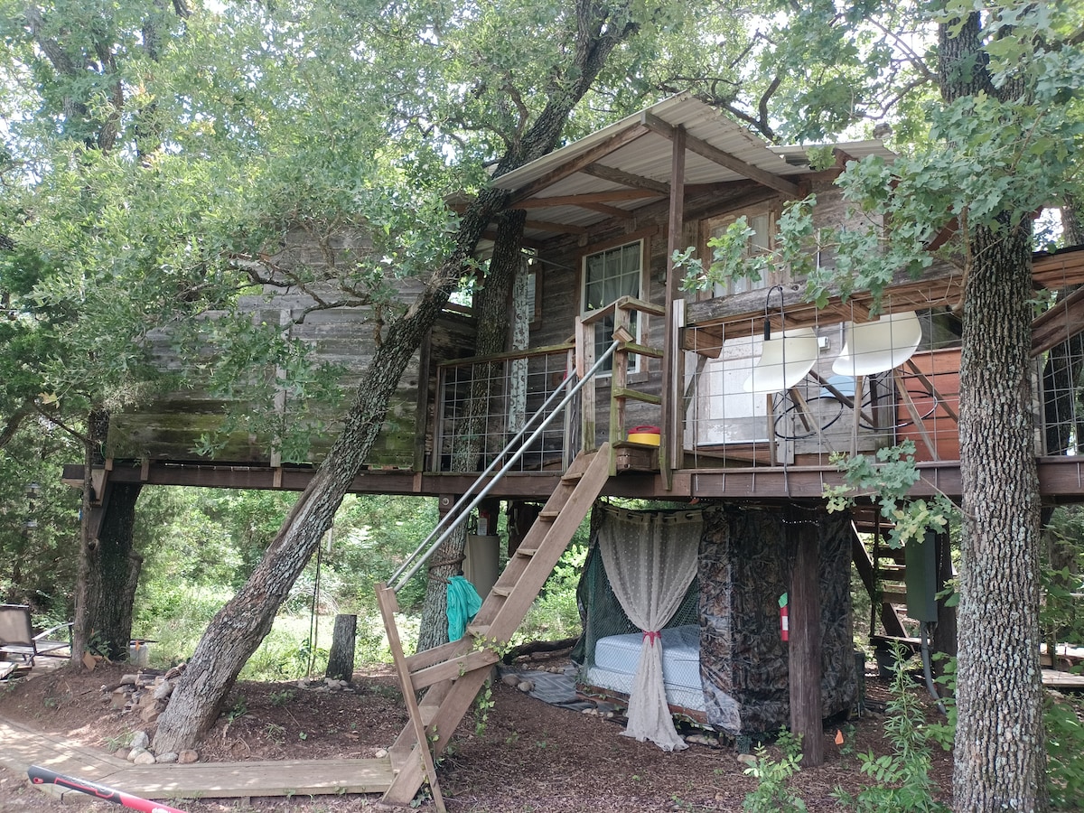 A real treehouse, built with wonder and wild imagination—just like the one you dreamed of as a kid. Swing, climb, soak, paddle, and play among the trees. There’s a cowboy tub under the stars, trails to wander, frogs to sing you to sleep, and a cargo net for lounging above it all. It’s peaceful, private, and full of charm. One night is fun—but you’ll wish you had more. Robin’s Nest isn’t just a place to stay. It’s a place to feel alive again.
