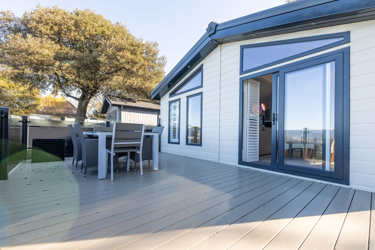 Sleeps 12 - 10 Beds - Hot Tub Cosy and stylish chalet, perfect for making cherished family memories. Celebrate a special occasion or unwind in style with a huge hot tub. The chalet is an ideal base to explore the magical New Forest. Its spacious open-plan design is made for shared meals and quality time. Dinning table seats 12 people. Comfy sofa for a very large groups. Soak in the large hot tub or fire up the BBQ. Ample parking for 8+ cars, or just a 15-minute stroll from the train station.