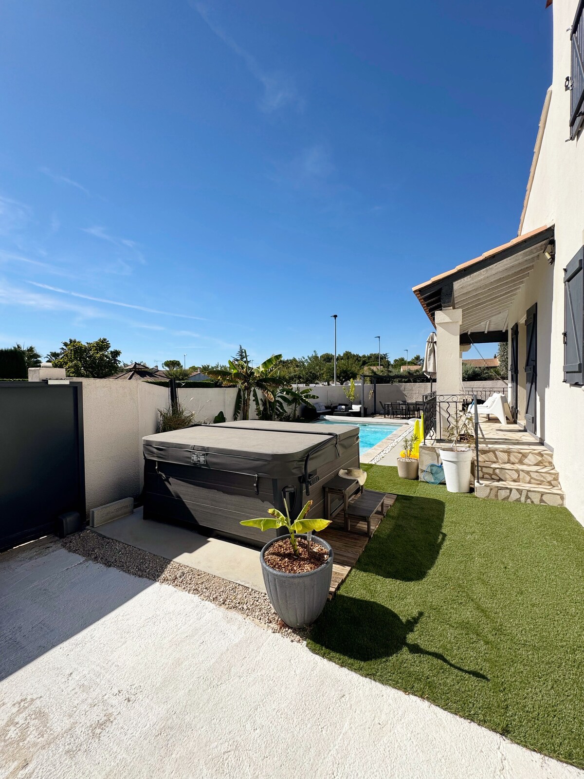 Este alojamiento tranquilo ofrece una estancia relajante para toda la familia 🌞😎 Ideal para recibir a la familia en la zona o para visitar la zona.... 20 minutos de las playas 🏖 20 minutos de Montpellier 30 minutos de Nimes A 100 m recorrido de salud con juegos para un agradable paseo 🌱 También a 100 m, vía verde para un paseo a pie o en bicicleta 🚵♂️ A la salida del pueblo, parque de animales para un hermoso momento de descanso con los niños 🦚🐎🐑 Tiendas en el pueblo, supermercados a menos de 5 km