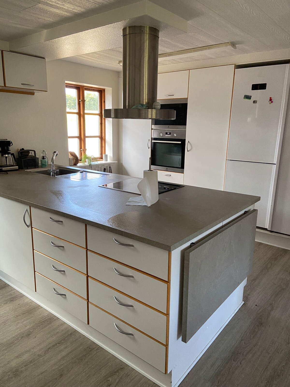 Ferielejlighed total ny renoveret med nyt køkken/stue i et, køkkenet er med induktion kogeplade, varmluftovn og køl/frys. Store fliser på gulvet med gulvvarme. I enden af rummet er der opgang til dejlig stor hems med op til 4 sovepladser. Nyt badeværelse med bad og toilet. Nyt soveværelse med dobbelt seng der kan deles til 2 enkelt senge, hvis det ønskes. Dejlig terrasse med bord, stole og grill. Haven er indhegnet og med 2 låger så der kan lukkes helt af hvis man har hund. Parkering tæt på dør