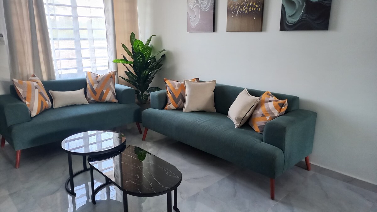 Modern, private, and perfectly located! Enjoy an LG Dual Inverter AC, LG OLED Evo AI 55" TV (2025 model) with prime video. Netflix, YouTube etc. Starlink WiFi. 2m orthopedic hybrid bed, 24/7 power, hot water, a solar iron, and a full kitchen with gas stove, double-door fridge, bar stools, and cocktail glasses. Relax in a cozy living room with a ceiling speaker, workspace, and beautiful couch. Just 5–10 minutes from six malls. You’ll love it here. Book now!