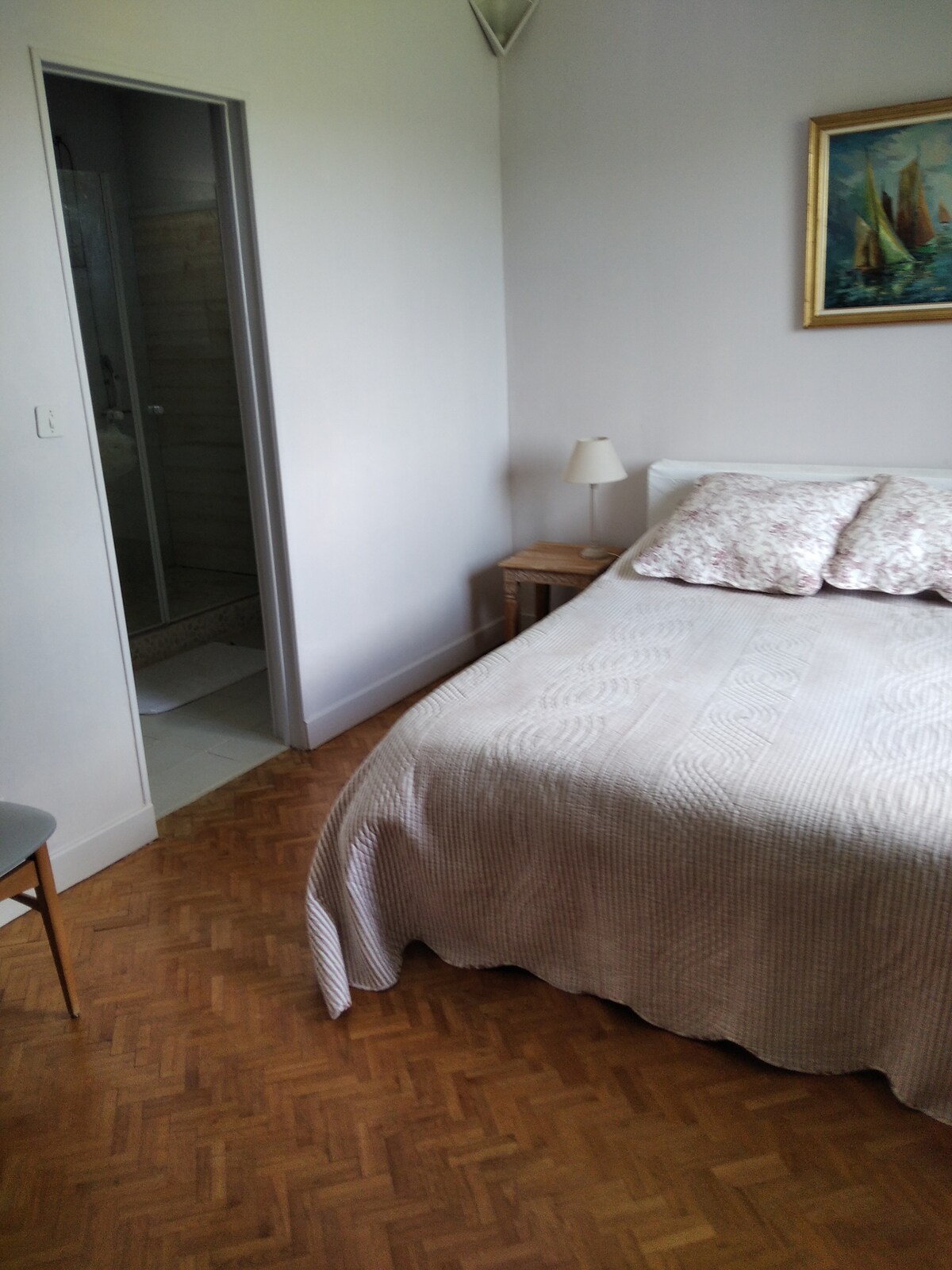 Chez Véronique se encuentra a orillas del agua en una casa situada en Lamothe montravel a 3 km de Castillon la Bataille a 17 km de St Emilion y Ste Foy la grande. Una escalera te lleva a la orilla del agua. Una parcela de 4000 m ² alberga árboles frutales. Tengo una habitación para 2 personas, y un altillo situado encima de la habitación y con capacidad para otras 2 personas. El acceso al altillo es a través de una escalera con barandilla dentro de la habitación