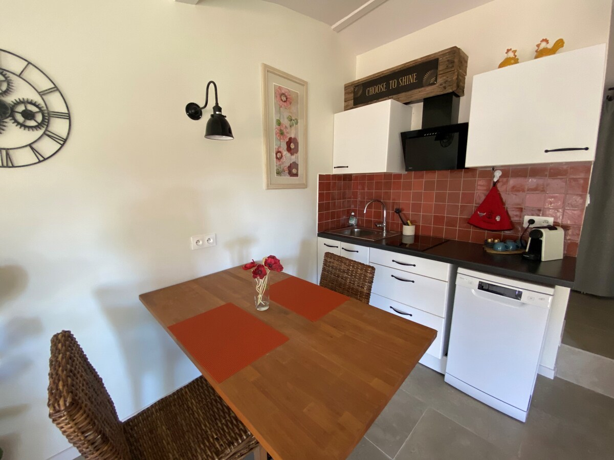 Bienvenue au gîte Le Patio 🌿 Indépendant et régulièrement redécoré, ce gîte de 45 m² allie confort, modernité et climatisation pour un séjour en toute sérénité. Vous profiterez d’un grand jardin privatif exposé plein sud, au cœur d’une propriété arborée de chênes centenaires. Soleil, senteurs méditerranéennes et chant des cigales rythmeront vos moments de détente. Un cadre idéal pour se ressourcer et savourer la douceur de vivre du Sud. 🌞