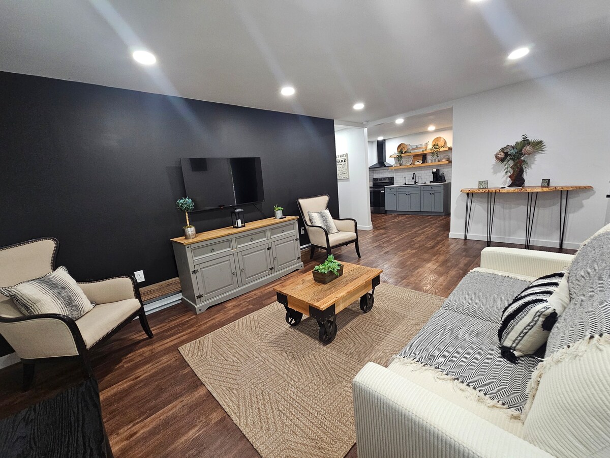 Relájate en Huntress Acres en esta elegante unidad de 1 dormitorio en el antiguo Scandinavian Motel, ahora Huntress Acres. Disfruta de una cocina completa, un acogedor salón y un moderno baño de estilo spa. Televisores inteligentes Roku en dormitorios y sala de estar, Internet Starlink. Estamos convenientemente ubicados justo en la autopista 118, a solo 4 millas del Parque Estatal Ricketts Glen con 22 cascadas y cerca de las tierras de caza estatales, es el refugio perfecto para excursionistas, cazadores y amantes de la naturaleza. Elegante y listo para tu aventura.