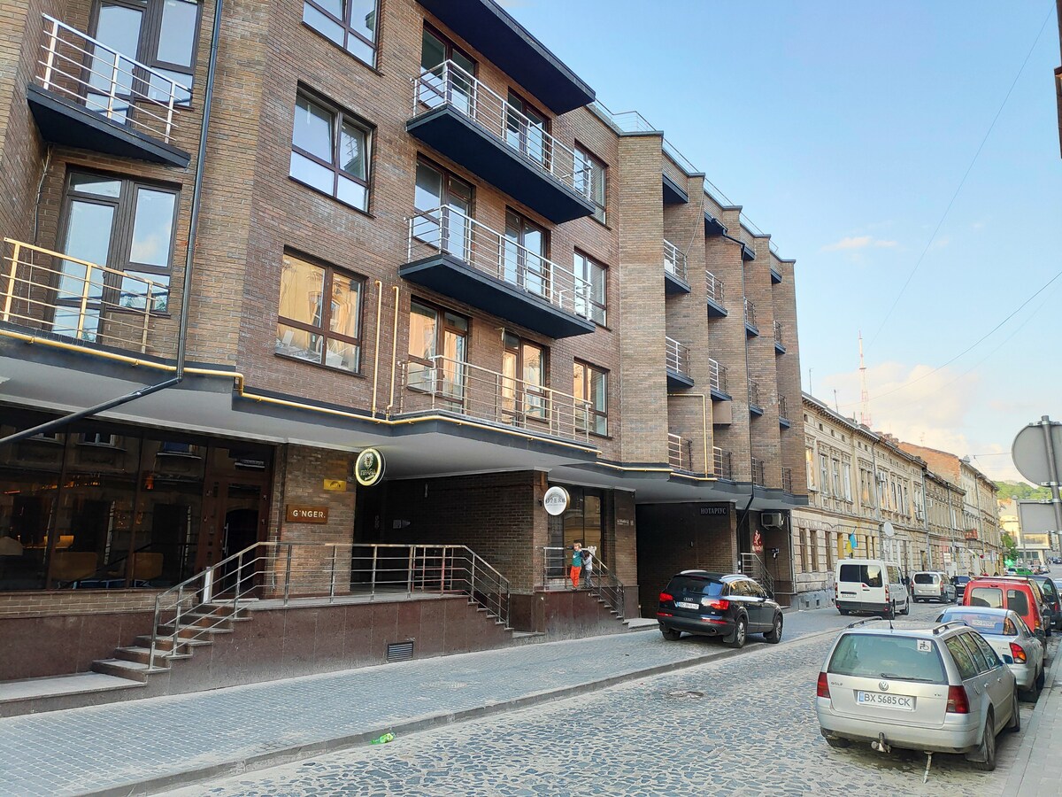 Disfruta de un ambiente elegante en este lugar céntrico. Apartamento moderno de una habitación con cocina y sala de estar y un dormitorio aislado en el centro histórico de Lviv. Nueva renovación hecha, amueblada y equipada con electrodomésticos: microondas, hervidor, hervidor, lavavajillas, lavavajillas, secador de pelo, aire acondicionado. Cerca hay atracciones históricas, así que la arquitectura, los museos, los teatros, las tiendas, los restaurantes y el estacionamiento público. El ambiente elegante de esta propiedad se encuentra en el corazón de la ciudad.