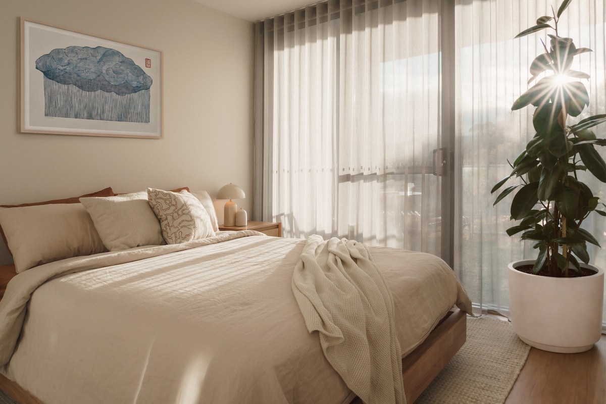 ¿Buscas algo que se parezca más a un hogar? ¿Cansado de las estancias básicas? Tenemos lo que necesitas. Este nuevo y fresco dormitorio en Dickson tiene una sensación muy buena, al igual que tu casa. Este espacio está diseñado por artistas para amantes del arte y el estilo con características de calidad hotelera. Despiértate con vistas al amanecer del monte Ainslie y disfruta de tus días en el mejor barrio de Canberra con fácil acceso a pie, en tren o en patinete a excelentes cafeterías, restaurantes y tiendas.