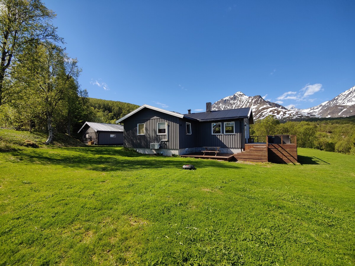 La cabaña está ubicada en una pequeña zona de cabaña con vistas al mar, los Alpes de Lyngen y los fiordos. Hay buenas condiciones de sol desde la mañana hasta la noche. Es maravilloso disfrutar de la vista, el amanecer como el atardecer, desde el interior o en la terraza exterior. El invierno ofrece hermosas luces que cambian durante todo el día. Y, por supuesto, puedes disfrutar de las mágicas auroras boreales bailando en el cielo directamente desde la cabaña. Aquí puedes hacer un recorrido por la cima, andar en bicicleta, caminar por el bosque o hasta el mar, o simplemente relajarte con una copa de vino y disfrutar de las vistas.