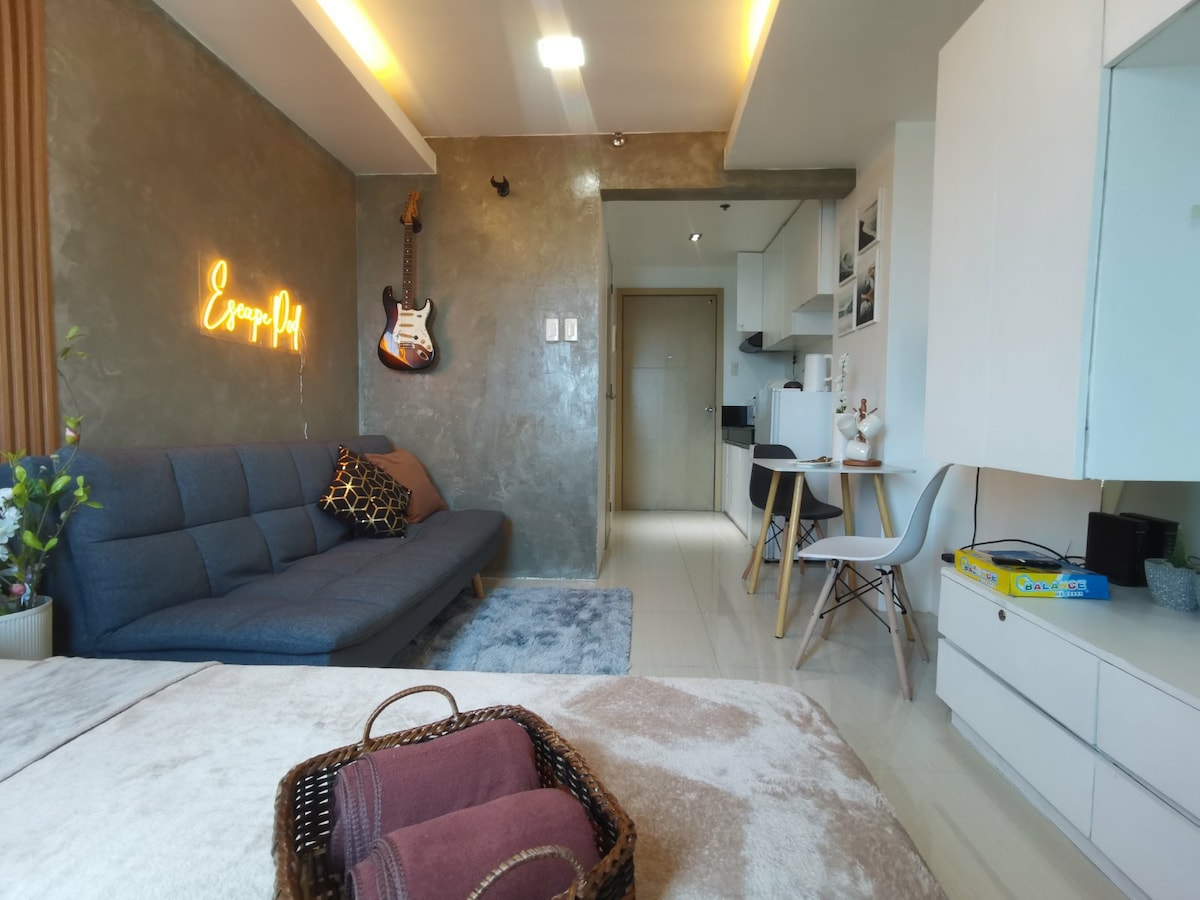 Welcome to Your Suite Escape—nestled right in the vibrant entertainment hub of Tomas Morato, Quezon City! Explore trendy cafés, indulge in local dining, or simply unwind after a long day with cozy movie nights on Disney+ and Netflix right in the comfort of your suite. Enjoy a thoughtfully designed studio with warm interiors, natural light, and hotel-style comforts. If this place is booked on your date, check out our other themed spot at airbnb.com/h/your-suite-escape-the-26th-at-tomas-morato