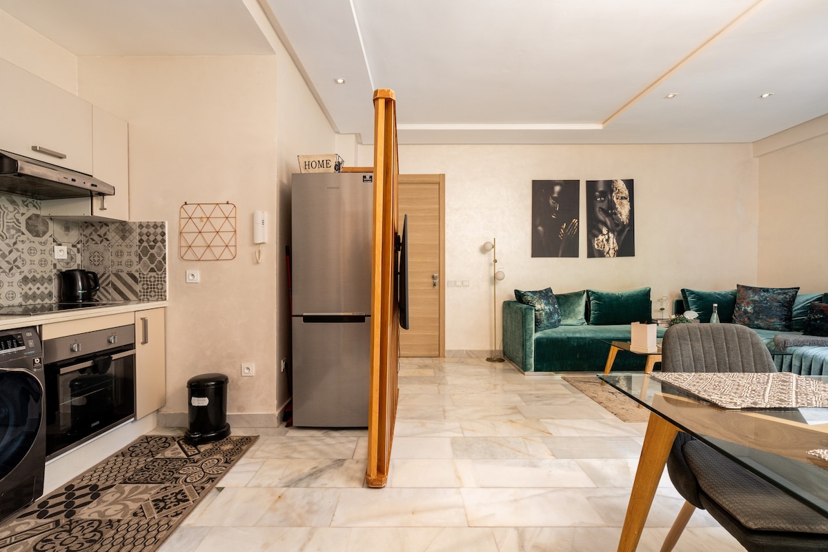 Apartamento sublime, nuevo, acogedor, tranquilo y cálido. Situado en pleno centro de Casablanca, en un barrio animado cerca de todos los servicios (restaurantes, cafeterías, panaderías, supermercados, peluquerías, estadio de fútbol) Totalmente equipado: cocina bien equipada (placa de inducción, lavadora lavadora secadora, congelador, microondas, horno, utensilios de cocina), productos de baño y de limpieza, ropa de cama, ropa de cama de calidad superior, 2 televisores, Netflix, fibra óptica de 100 megas.