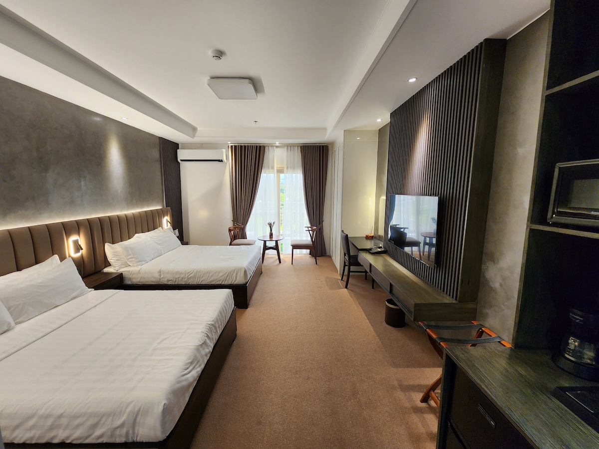 el hotel tiene una zona tranquila, a pocos pasos, Tiendas de restaurantes, zona franca del aeropuerto internacional de Clark, Buenos hospitales, hoteles y restaurantes.