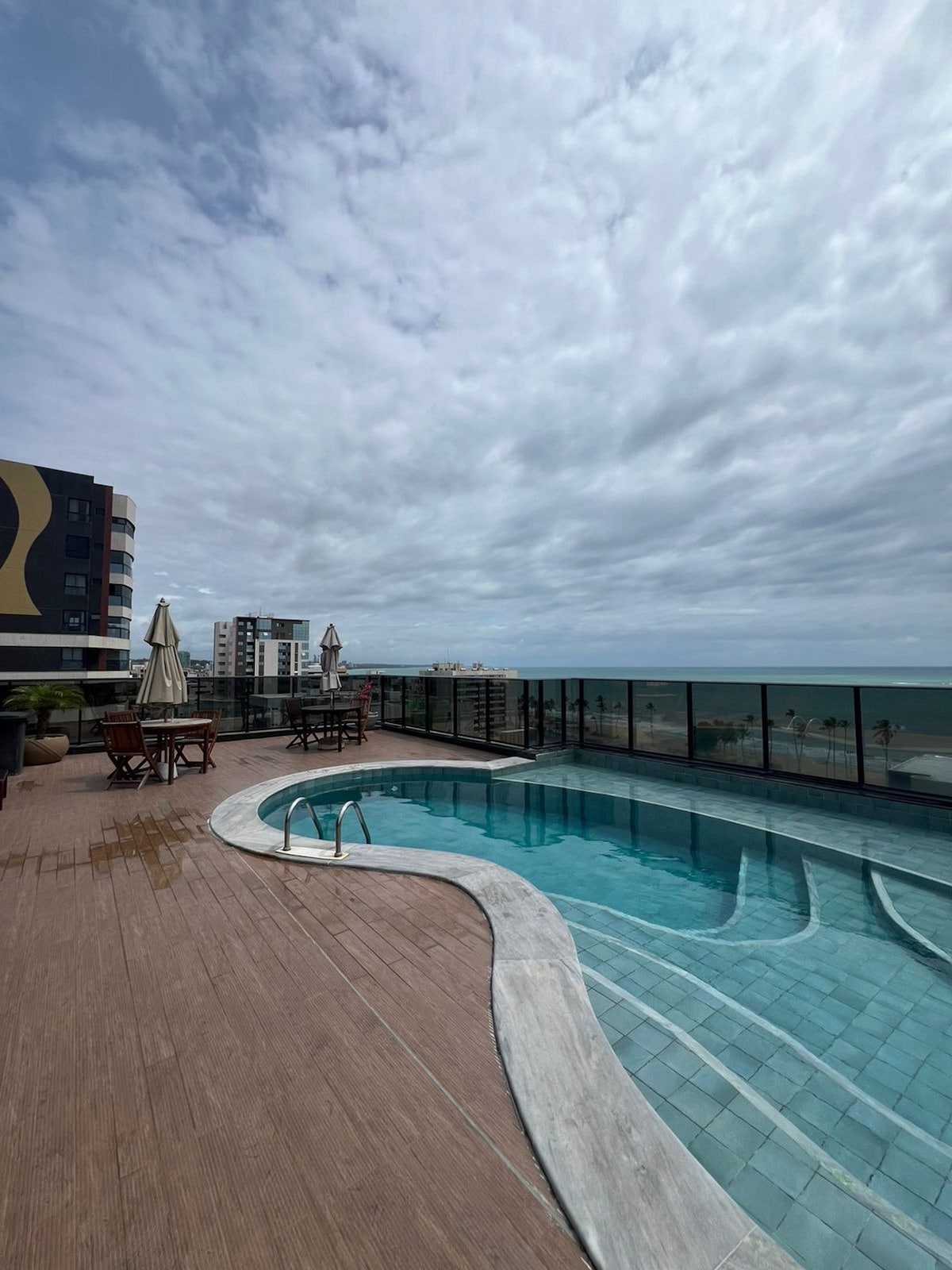 Vacaciones inolvidables a 300 metros de la playa en Maceió, una ubicación más que privilegiada, a menos de 100 metros de restaurantes, pizzerías, supermercado, plaza, gasolinera, todo muy cerca, apartamento totalmente equipado, para que tus vacaciones sean extraordinarias, 2 dormitorios, 1 suite con aire acondicionado y un gran salón, piscina en la azotea con barbacoa, con increíbles vistas al mar, espero tu reserva y recibirás una guía con muchos descuentos en Maceió