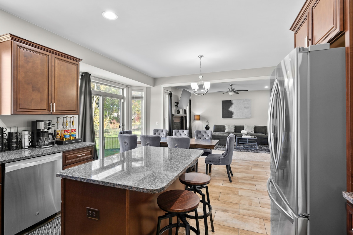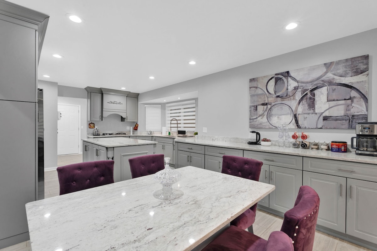 Reúne a tus amigos o familiares en nuestra espaciosa casa moderna de 223 metros cuadrados, ¡diseñada para grupos grandes! Con mucho espacio para relajarte, te encantarán las zonas comunes bellamente decoradas y dos espacios de trabajo, perfectos para viajeros de negocios. Disfruta de acceso rápido a internet y de todas las comodidades de un hogar. Situado en el corazón de Sterling Heights, estarás a pocos minutos de las mejores tiendas, restaurantes y entretenimiento. Crea recuerdos inolvidables juntos: ¡reserva ya tu estancia en nuestro refugio perfecto para grandes reuniones!