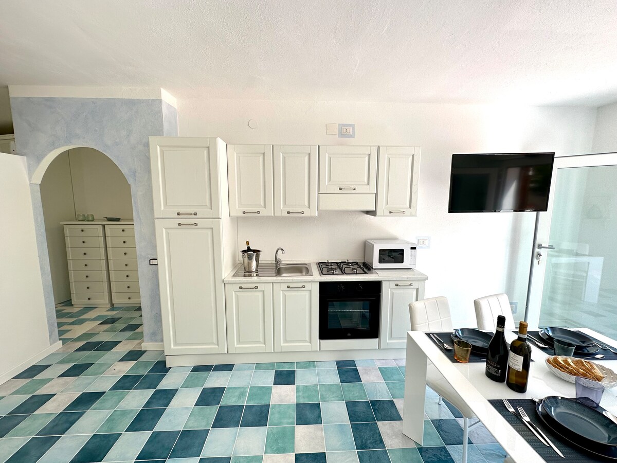 Resort la Marmorata | Casa de Ginevra Vittoria. Apartamento de tres habitaciones en la planta baja de Exclusive Resort con vistas a la maravillosa bahía de Marmorata. Completamente renovado en junio de 2023 con cuidado y pasión, azulejos en Cerasarda con varios tonos de azul para sentir incluso dentro de la casa como si estuvieras junto al mar. Aire acondicionado, wifi y playa privada. Zona interior: unos 65 metros cuadrados. Sala de estar con sofá cama + 2 dormitorios + 1 baño. Ocupación máxima: 7 personas.