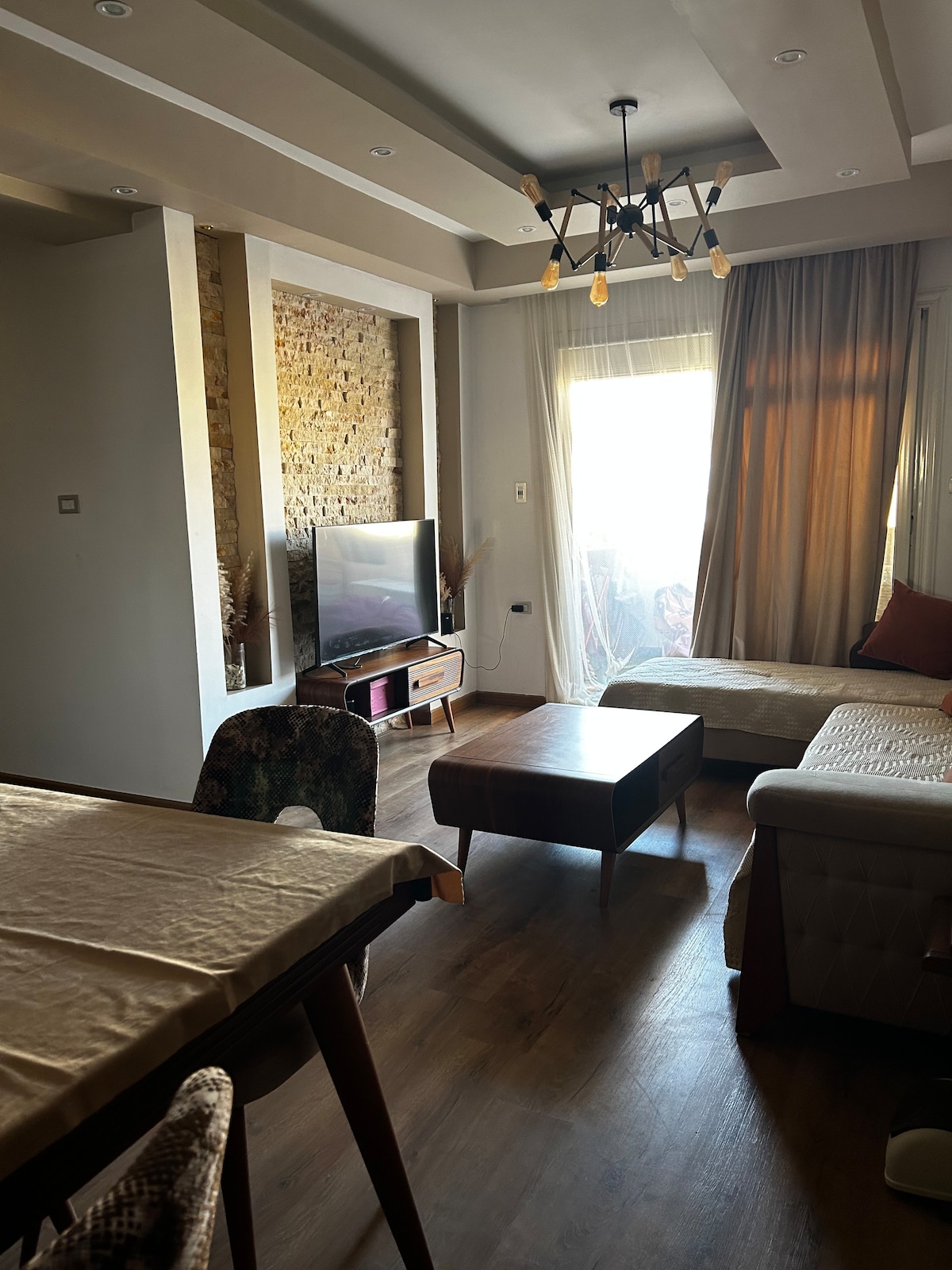 Disfruta de una estancia única y lujosa en este moderno apartamento totalmente amueblado en el corazón de Madinaty, a pocos pasos de tiendas, centros comerciales y restaurantes. Ofrece una amplia sala de estar, un acogedor dormitorio tamaño queen, una elegante ducha de estilo italiano y un aseo. La cocina americana abierta está totalmente equipada con electrodomésticos de última generación. El apartamento está totalmente climatizado y diseñado para su máxima comodidad.