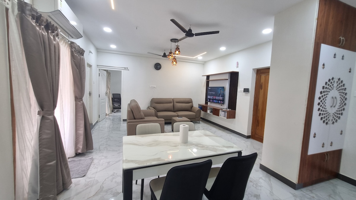 ¡Apartamento Chippy Madipakkam en todo el apartamento para ti ! 2BR- Aire acondicionado en todas las habitaciones, baño adjunto, cocina totalmente equipada, sala + comedor, amueblada con comodidades para satisfacer una estancia prolongada para familias y turistas, con capacidad para 4-6 adultos y 2-3 niños. WiFi ilimitado 150mbps, Jio SmartTv, estacionamiento privado y ascensor. Parada de autobús de 100 metros, a 2 KM de la estación de tren, A 8 KM del aeropuerto, A 5 KM de hospitales y emergencias. Muy cerca de centros comerciales y tiendas. Servicio de limpieza diario