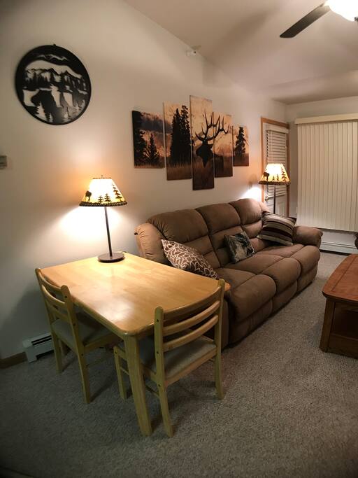 ¡Nuestro apartamento es el campamento base perfecto para tus aventuras en Big Sky! Cómodo para una familia o 2 parejas, está equipado con todo lo necesario para disfrutar de tu estancia. Lo remodelamos totalmente en 2018, por lo que todo es nuevo. Disfruta de una cocina totalmente equipada, lavadora/secadora, sofá cama, acogedora chimenea de gas, dos dormitorios con camas tamaño queen y 2 baños completos. Estamos justo al final del aparcamiento de esquiadores: ¡sal de nuestro edificio, cruza la carretera y súbete al servicio de transporte gratuito! ¡Te invitamos a disfrutar de nuestro apartamento cuando no estemos allí!