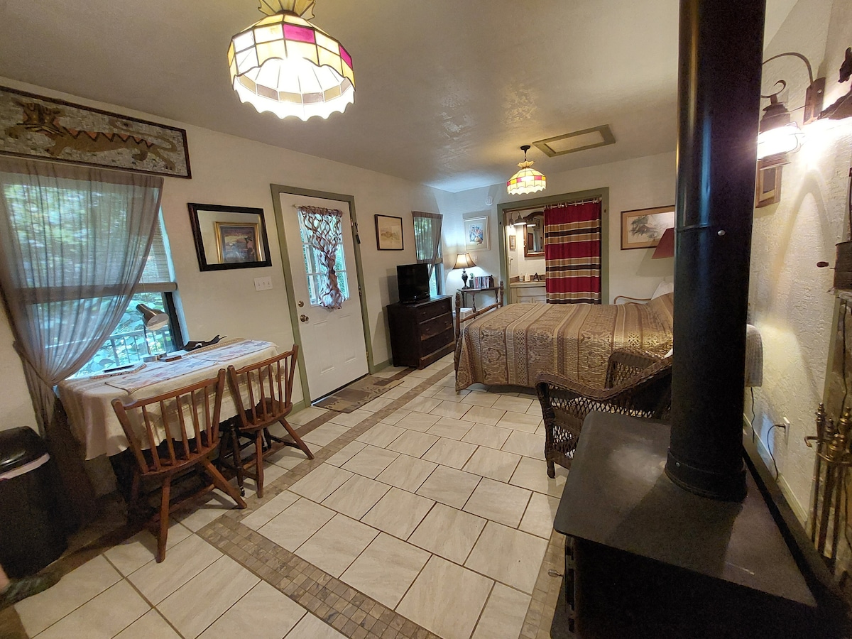 Charming creekside loft cottage. Perfect retreat for a romantic getaway or an adventure motorcycle ride in the beautiful scenery of pisgah national forest. Minutes away from max patch on the Appalachian trail and 30 mins from downtown Hotsprings. Relax listening to the beautiful sound of Meadowfork creek. Nestled feet away from the creek on what once was an 18 acre tobacco farm. Private bathhouse with shower/bathtub and toilet. Private fire pit, charcoal barbecue grill, picnic table, porch.