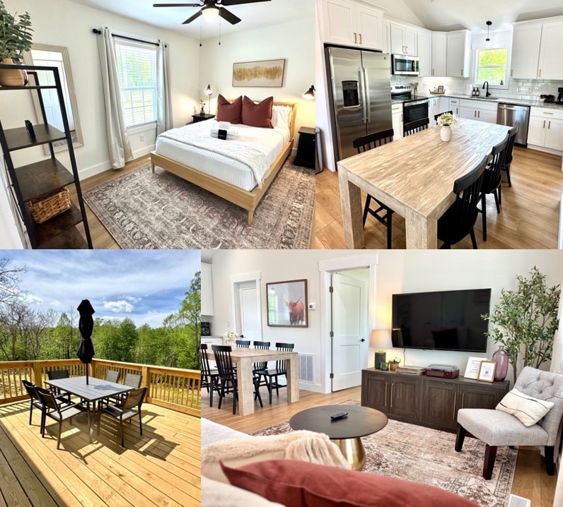 Bienvenido a «Our Well Place», una nueva casa de 3 dormitorios. Decorada profesionalmente con inspiraciones tribales que incluyen decoración de alta gama chic, moderna y de Tulum. Esta es una casa totalmente equipada que cuenta con una cafetera K Café Keurig, televisores inteligentes UHD en cada dormitorio y sala de estar, y una parrilla de gas infrarrojo. La propiedad es un refugio al aire libre que incluye un patio delantero cubierto y 3 terrazas diferentes en la parte trasera con vistas a un arroyo. Perfecto para una escapada tranquila en las montañas con tus seres queridos y amigos.