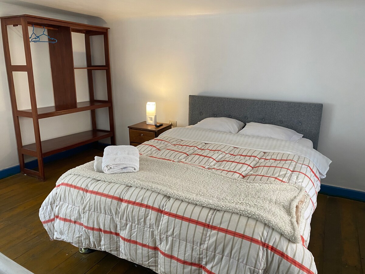 Alojamiento muy centrico, en el interior de la propiedad, comodo, muy tranquilo para el descanso, con area verde, cuenta con cocina, vajilla, electrodomésticos, TV Cable, agua caliente las 24 horas, WiFi de alta velocidad, lavanderia, cochera para auto gratis, esta ubicado en el segundo piso.