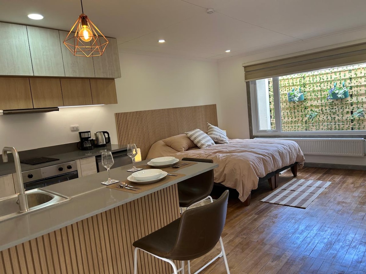 Departamento 1 o 2 huespedes, con diferentes tarifas ver en reservas. 1 dormitorio, donde puedes elegir cama king o 2 camas individuales. Ubicación excelente, a 500 metros de supermercado, cafeterías , locales de comida, farmacias, fruterías, correos lavandería etc. a 30 minutos caminando muy lento a la plaza El departamento se encuentra a un costado, dentro de la propiedad principal, totalmente independiente, con su propia entrada. Sector seguro ,internet ,calefacción central, Netflix .