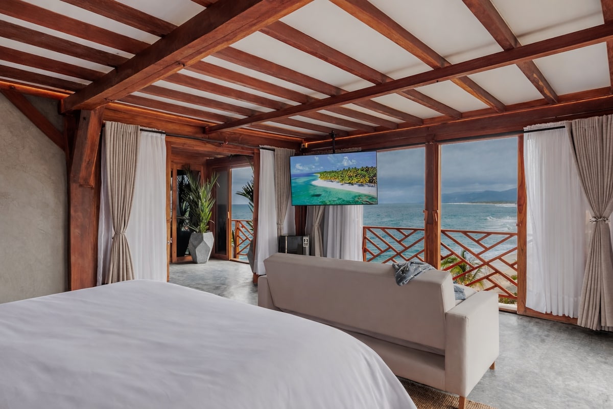 Nuestra cabaña azul se ubica en la propiedad de playa la ola, a unos metros del mar, contamos con un bar y restaurante en la propiedad. La recepción y el desayuno se toman en casa chapolin, a unos 5 min caminando. La cabaña cuenta con una cama king, baño privado, jardín con hamaca y vista al mar, mini bar, caja de seguridad, ventiladores. Es especial para aquellos que desean estar a unos metros del mar y cerca de todo.