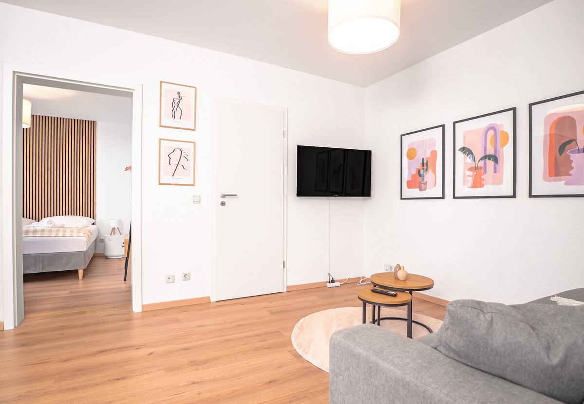 Herzlich willkommen in meiner schönen, hellen und komplett renovierten Zwei-Zimmer-Wohnung! - 60 qm groß - Schnelles WLAN (103 Mbit/s) - Bad mit Tageslicht und Dusche - Matratzen mit je zwei unterschiedlichen Härtegraden - Zusätzliche Matratzentopper - Fahrstuhl - Fußläufig zu Supermärkten, Bäckereien, Restaurants