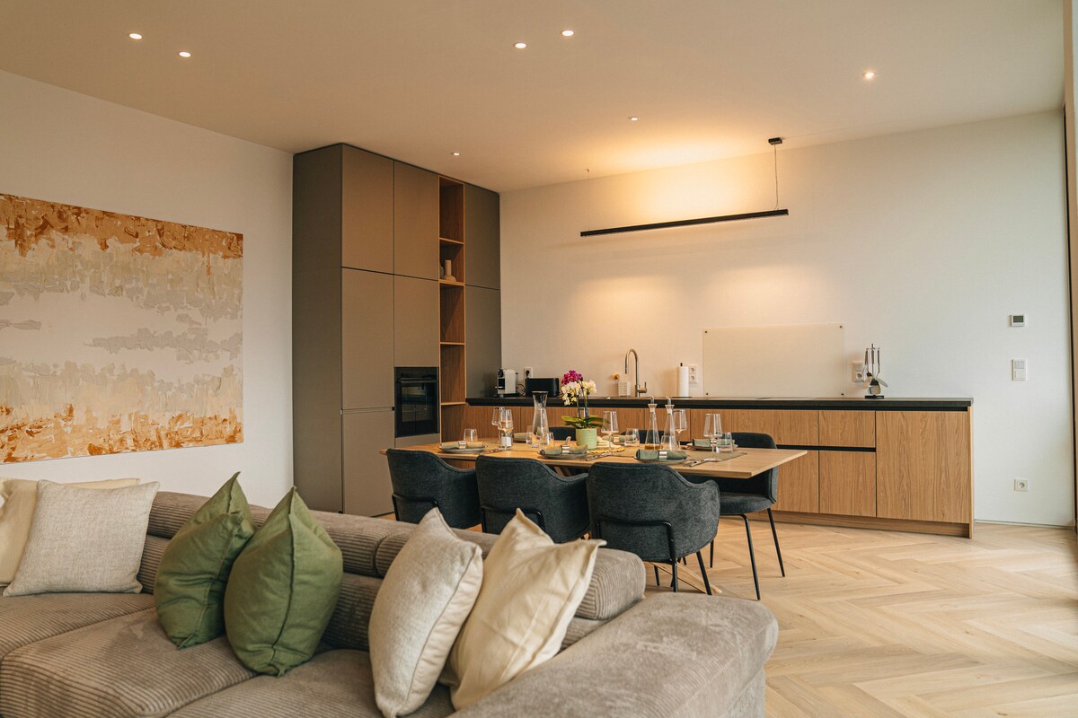 ¡Experimenta el lujo urbano en nuestro elegante ático de 105 metros cuadrados! Con dos dormitorios y un sofá cama, puede alojar cómodamente hasta 6 personas. Relájate en la terraza orientada al sur de 16 metros cuadrados, completa con salón y parrilla, o disfruta del lujoso baño con ducha a ras de suelo y bañera. La cocina totalmente equipada con electrodomésticos de alta gama no deja nada que desear. Este nuevo apartamento (primera ocupación) combina la comodidad moderna con una ubicación privilegiada, ¡perfecto para una estancia exclusiva!