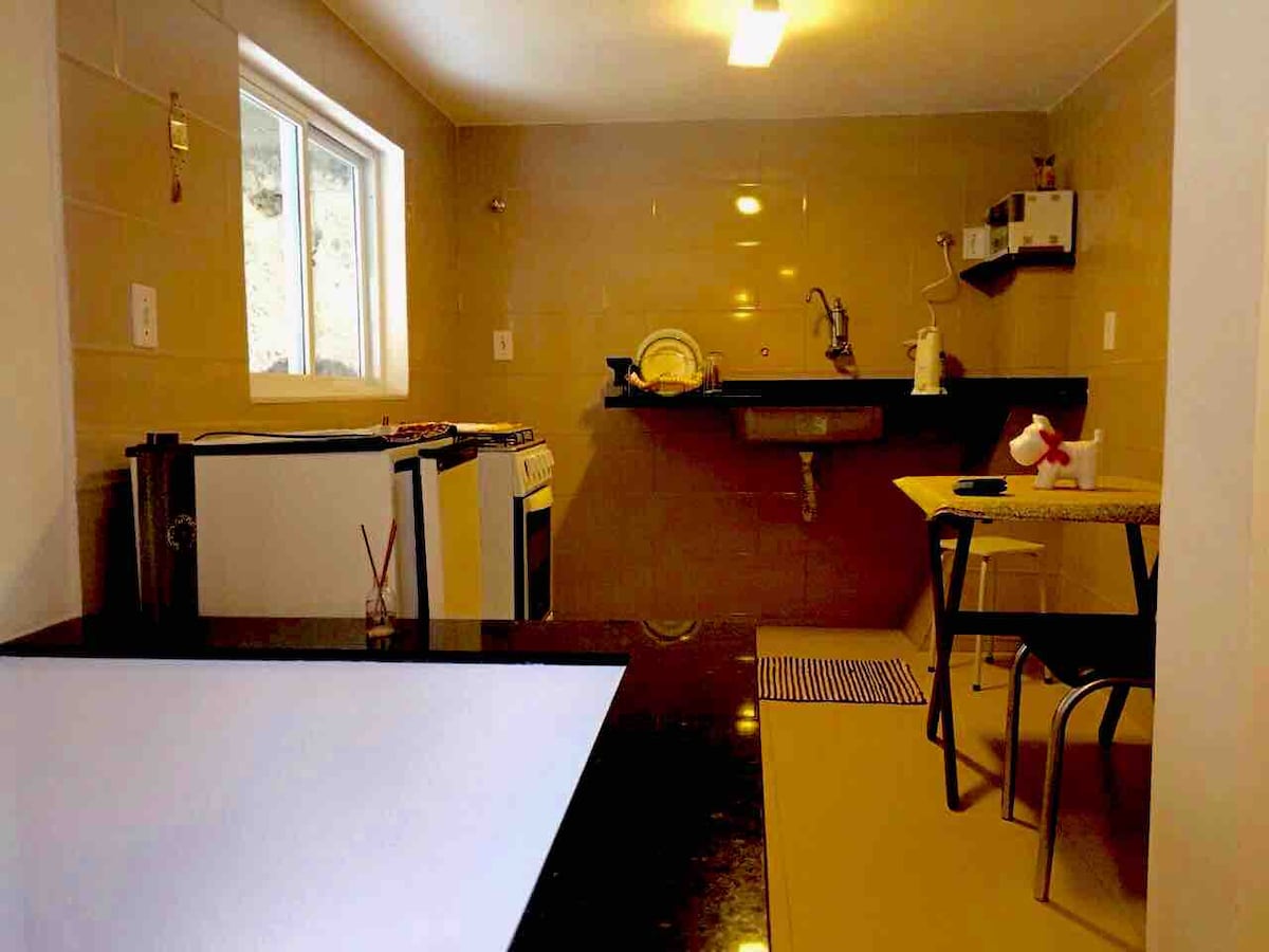 Abraza la sencillez en este lugar tranquilo y bien ubicado. Casa muy cerca del centro de Miguel Pereira (a 5 minutos a pie de la estación), cerca de la Rua Coberta y la Rua Torta. Restaurantes, tiendas, farmacias, mercado y toda la infraestructura del Centro de Miguel Pereira a pocos minutos a pie. Ambiente acogedor con cocina para preparar sus propias comidas.