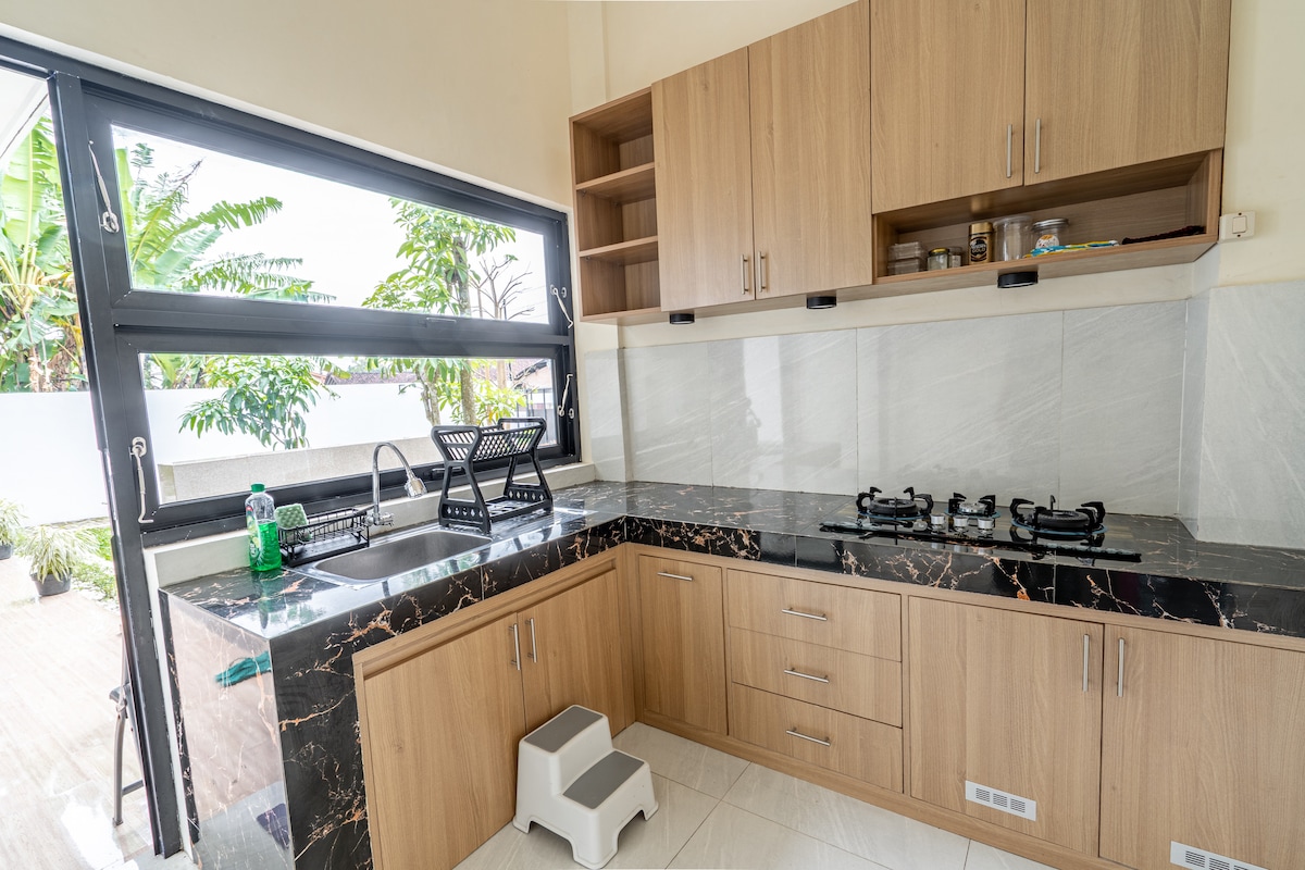 Bring the whole group to this great place with lots of room for fun! Spacious house in Sleman, Yogyakarta for you and your trip groups to spend some leisure time. Full-packed facilities: ✅ 5 bedrooms (extra beds are available under confirmation) ✅ 7 bathrooms ✅ Swimming pool ✅ Spacious living rooms ✅ Meeting room & space ✅ Kitchen & pantries ✅ Speaker & karaoke ✅ Espresso machine and optional breakfast 60min drive to Borobudur 40min drive to Prambanan 20min drive to Tugu Jogja & Malioboro
