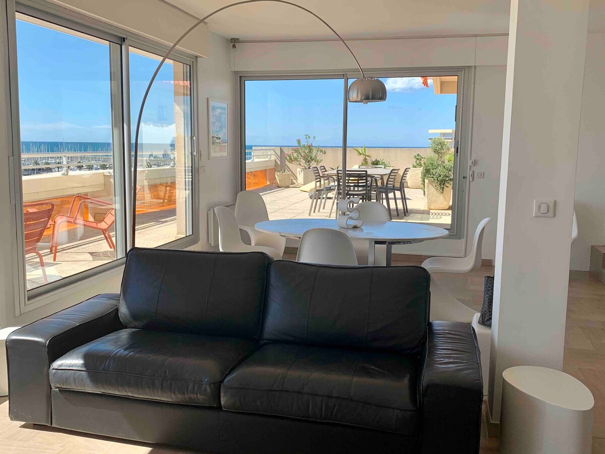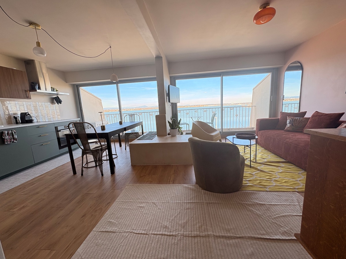 Las vistas más bonitas de Palavas. 4 ventanales con vistas al mar.