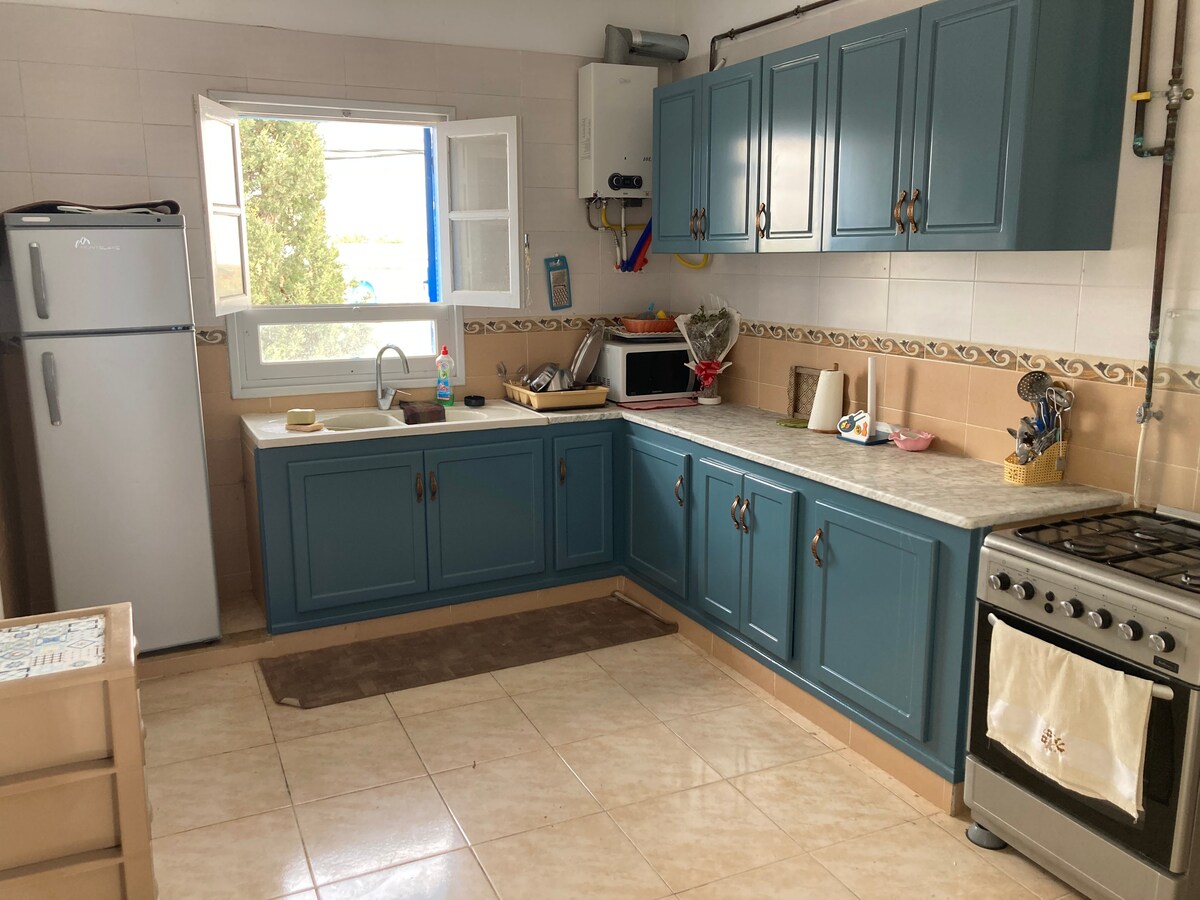¡Te damos la bienvenida a nuestra acogedora casa! El apartamento está situado en la primera planta de un pequeño edificio en Mahdia El Raoudha, cerca de la mezquita El Ghofrane. Está a unos 20 minutos a pie de la playa, a 5 minutos en coche.