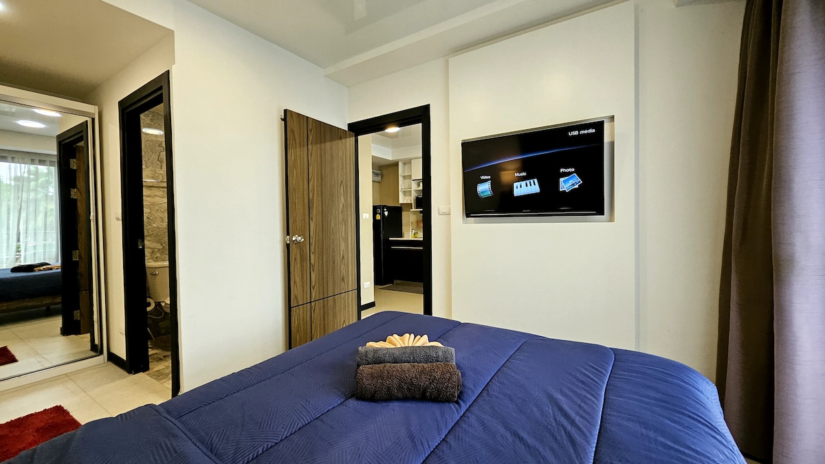 Sansiri Baan Mai Khao, un lujoso condominio de estilo resort en la tranquila playa Mai Khao de Phuket, el lugar perfecto para tus vacaciones. La habitación "Blue Marine" fue diseñada para estar en armonía con la arena blanca y el agua azul clara de la playa de Mai Khao. Nuestros muebles de alta calidad harán que tu estancia sea cómoda. Instalaciones y servicios que puedes utilizar de forma gratuita : muchas piscinas, gimnasio, sauna, montar en bicicleta. *DESCUENTO para el nuevo registro de Airbnb .com/c/lupthawita