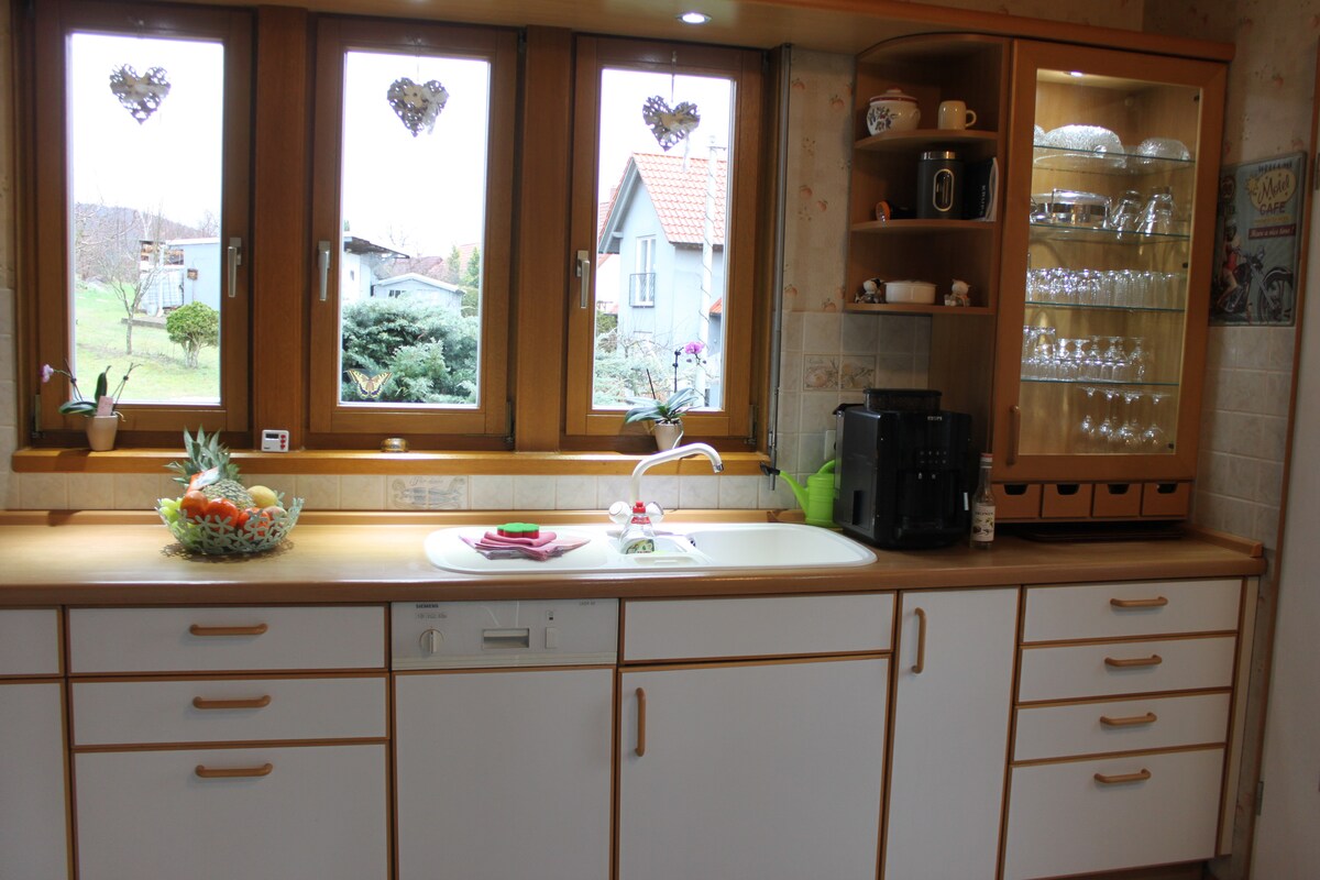 Genieße einen erholsamen Urlaub in unserer großzügig und liebevoll eingerichteten Ferienwohnung (140 qm). Die im Jahr 2024 renovierte Wohnung besteht aus einem Wohnbereich mit Zugang zum Balkon und einer gut ausgestatteten Küche sowie 3 Doppelzimmern mit jeweils eigenem Bad mit Dusche und WC. Unsere Ferienwohnung für 2-8 Personen mit unmittelbarem Anschluss an den Vulkanradweg (10m) liegt in ruhiger Stadtrandlage mit herrlichem Blick auf die Altstadt Herbsteins im Naturpark Hoher Vogelsberg.