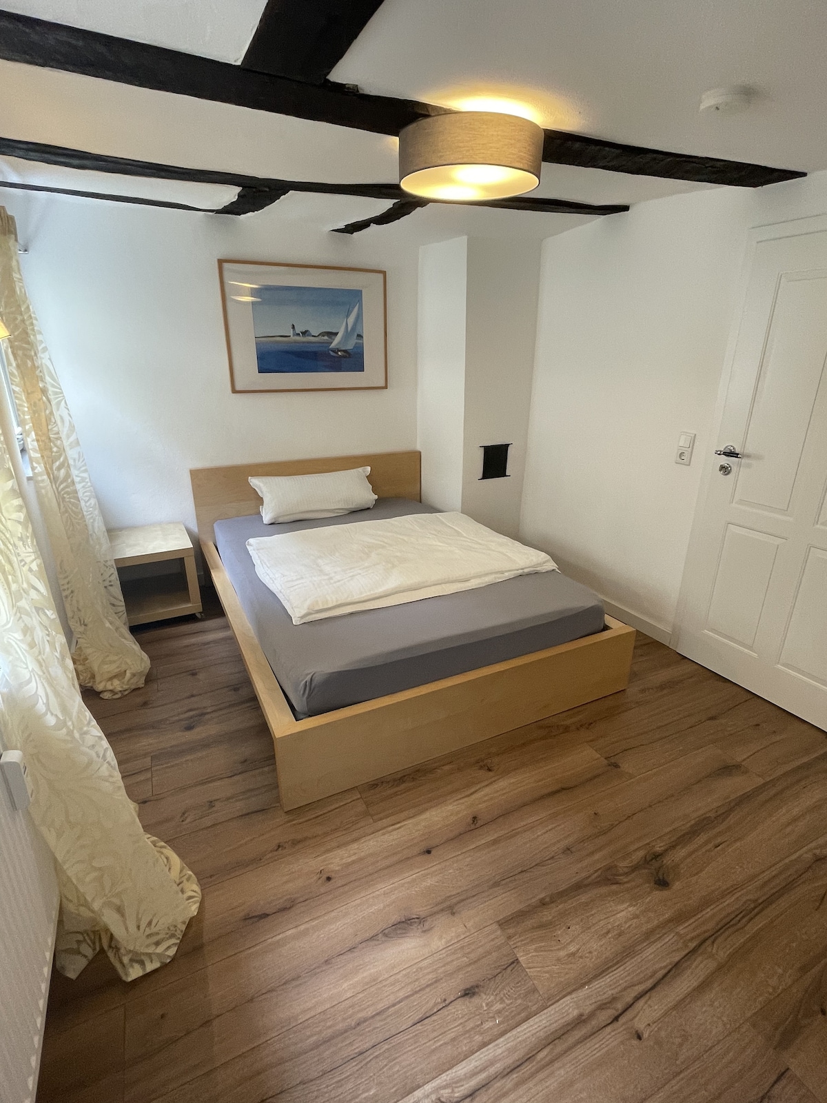 Doppelbett / Schlaf und Wohngelegenheit der besonderen Art in einer top renovierten Hofreite von 1730 für Business & Privat. Geschmackvoll möblierte Zimmer für Einzel- oder mehrere Gäste. Die Hofreite befindet sich zentrumsnah in Karben (Nähe Frankfurt), neben der Nidda in ruhiger, naturnaher Lage ohne Fluglärm mit Parkplätzen. Es besteht eine direkte Anbindung mit der S3 zur Frankfurter Innenstadt, Messe und Hauptbahnhof ohne umsteigen ca. 20 Min, sehr gutes WLAN...