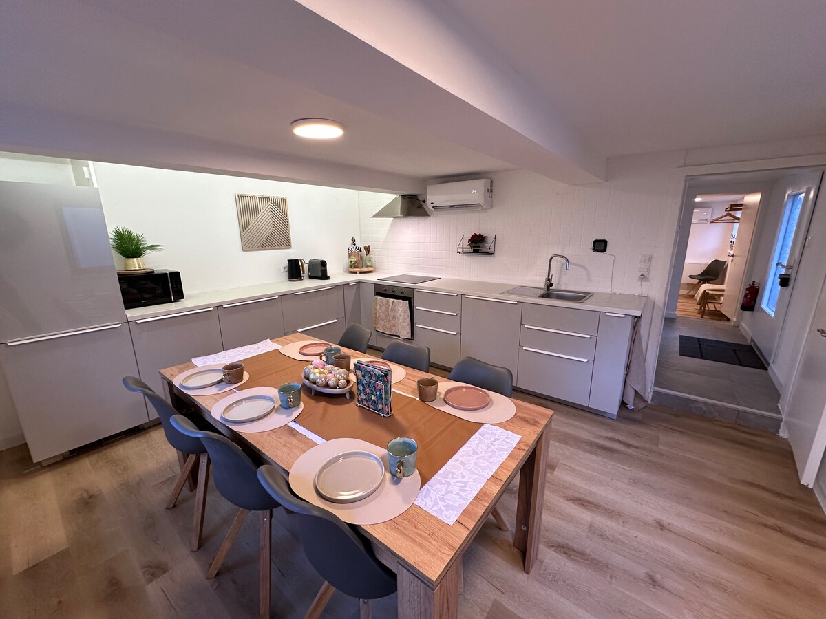 ⭐️“Deja de desplazarte, encontraste el alojamiento que buscas”.⭐️ ✔️Ropa de cama y toallas de alta calidad incluidas ✔️Lavadora y secadora gratis ✔️Aire acondicionado en todas las habitaciones ✔️ Estacionamiento gratuito justo en la casa ✔️ Cocina grande con isla de cocina y 4 asientos de bar ✔️ Ideal para familias y niños: un paraíso para los niños ✔️Conexión rápida a Frankfurt / feria comercial (Messe) ✔️ Patio/jardín privado con puerta con cerradura ✔️ Wifi superrápido y todos los servicios de streaming Mesa de comedor ✔️ grande para al menos 8 personas