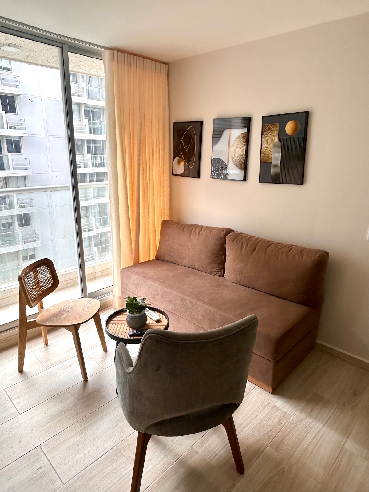 Disfruta de este lindo y tranquilo alojamiento que tiene excelente ubicación, se encuentra en un piso 5, es acogedor y cómodo, cuenta con todo lo que necesitas para estancias cortas o largas, tiene estacionamiento gratis en el sótano, entra mucha ventilación y luz, 2 aires acondicionados, edificio nuevo con zonas comunes y ascensor, el barrio es super tranquilo y hay un centro comercial, restaurantes y supermercados muy cerca. Ideal para recuperaciones por intervenciones médicas.