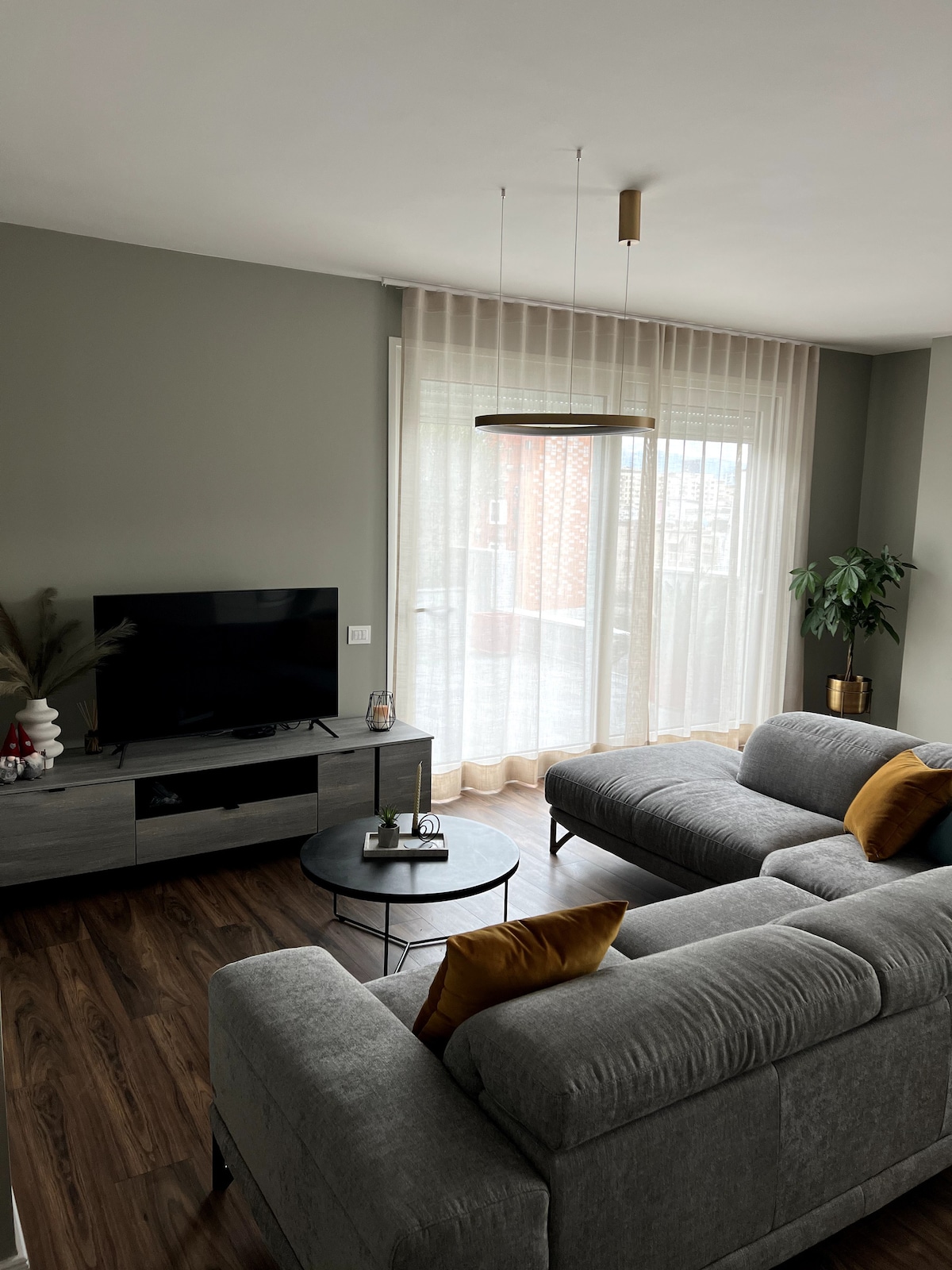 The apartment has been concepted by prioritizing elegance, simplicity and ultimate comfort. Enjoy your time with family and friends, while looking at the view offered by large windows that fill the rooms with plenty of natural light. Its convienient location adds to the pleasant experience, just 10 minutes away by foot from the city center square in one of the new modern areas of Tirana.