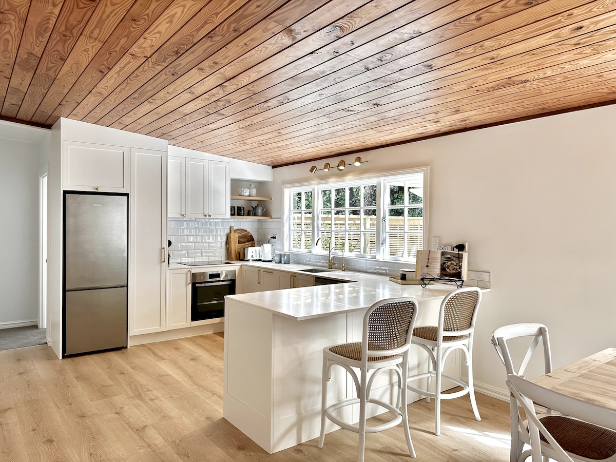 No te dejes engañar por el nombre, la casa de verano de Nueva Zelanda es idílica durante todo el año. Ubicada en una propiedad de estilo de vida ecuestre por un camino rural tranquilo. Abre las puertas de tu dormitorio a la relajante zona de la piscina o al patio privado al aire libre junto al dormitorio y disfruta de una taza de café con los sonidos de la naturaleza. A 30 minutos del centro de negocios y cerca de restaurantes galardonados, viñedos y las playas de la costa oeste. Trae tus zapatos para caminar o bicicletas, estamos a poca distancia a pie del bosque de Riverhead.