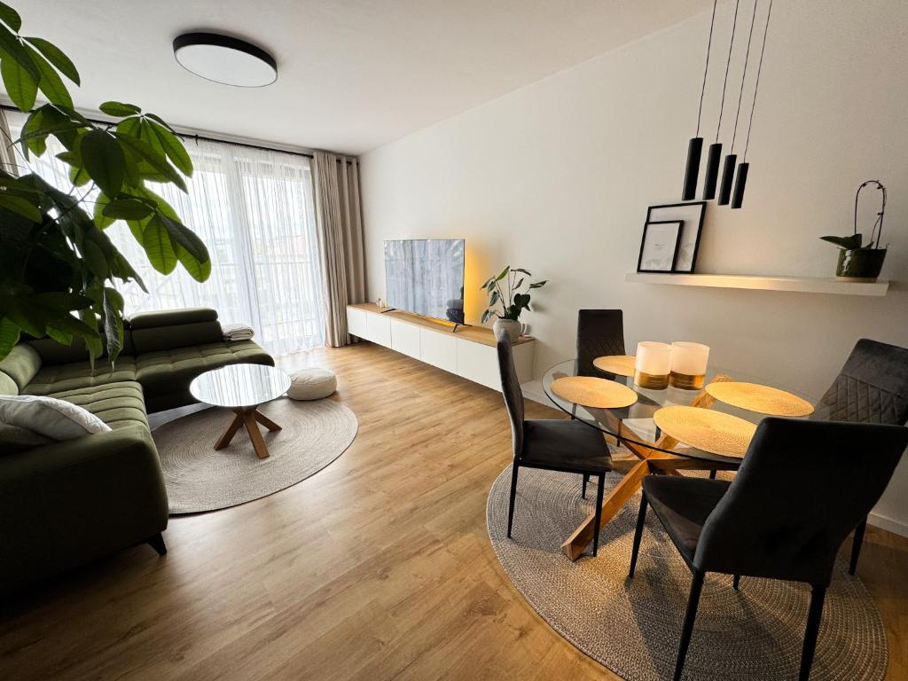 El elegante apartamento de dos habitaciones PURE te encantará con su estética atemporal, su ambiente tranquilo y su interior luminoso con finos detalles en oro. Ideal para 4 personas que buscan comodidad sin compromiso, ya sea para una estancia de fin de semana o un viaje de negocios.
