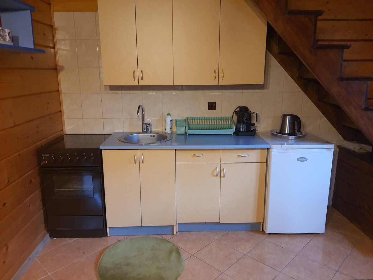 Una pequeña y acogedora casa de madera para hasta 4 personas. Una casa de campo situada en una isla rodeada de un estanque donde se puede pescar o nadar. En los días más fríos, la chimenea proporcionará calidez y un ambiente fresco:) Posibilidad de reservar en privado. ¡También tenemos cocinas en temporada de verano que sirven deliciosas comidas!