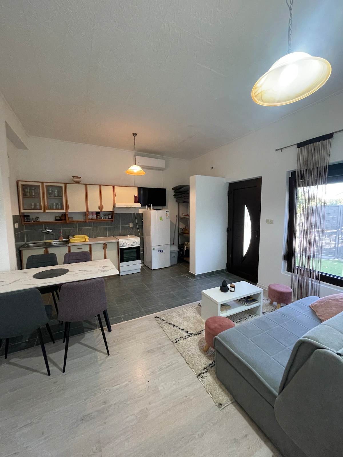 Bienvenido a nuestro elegante y único apartamento en la planta baja, perfecto para una escapada relajante. Este moderno espacio cuenta con una cocina bien equipada con comedor, un dormitorio y sala de estar combinados y un hermoso baño pequeño diseñado con cal. A solo 450 metros de la playa y a pocos pasos del vibrante centro de Malinska, nuestro apartamento ofrece comodidad y conveniencia.