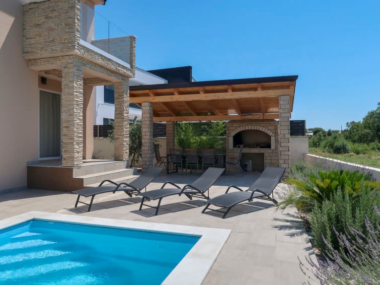 This modern two-story villa offers a private pool and three beautifully appointed bedrooms, each with its own en-suite bathroom. Guests can enjoy a fully equipped kitchen, a private sauna, and a spacious terrace featuring a fireplace and an outdoor dining area surrounded by the greenery. Nestled in a peaceful setting just 3 km from the center of Malinska and its beaches, the villa combines authentic charm with comfort, privacy, and effortless relaxation.