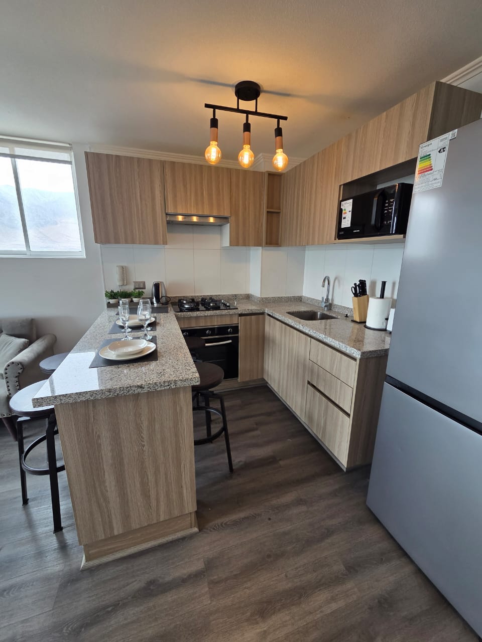 Hermoso y nuevo departamento de un dormitorio, completamente amoblado, tranquilo e ideal para dos personas , cómoda terraza con excelente vista al puerto de iquique, cuenta con wifi, tv por cable, central y cercano a pubs y restaurantes del centro histórico de la ciudad.