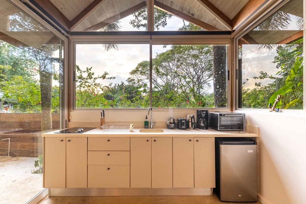 Moderna villa de 2 dormitorios/2 baños en Mal País con piscina privada y exuberante terraza trasera ajardinada en una comunidad cerrada segura, a 5 minutos a pie de la playa, a 2 minutos en auto de surf en Playa Carmen y Santa Teresa. Wi-Fi de fibra rápida, TV inteligente de 55”, aire acondicionado y ventiladores de techo en todas partes. Cocina totalmente equipada con comedor interior y exterior. Dos dormitorios queen, ducha al aire libre y estacionamiento privado. Ideal para surfistas, parejas, nómadas digitales o una escapada relajante a Costa Rica.